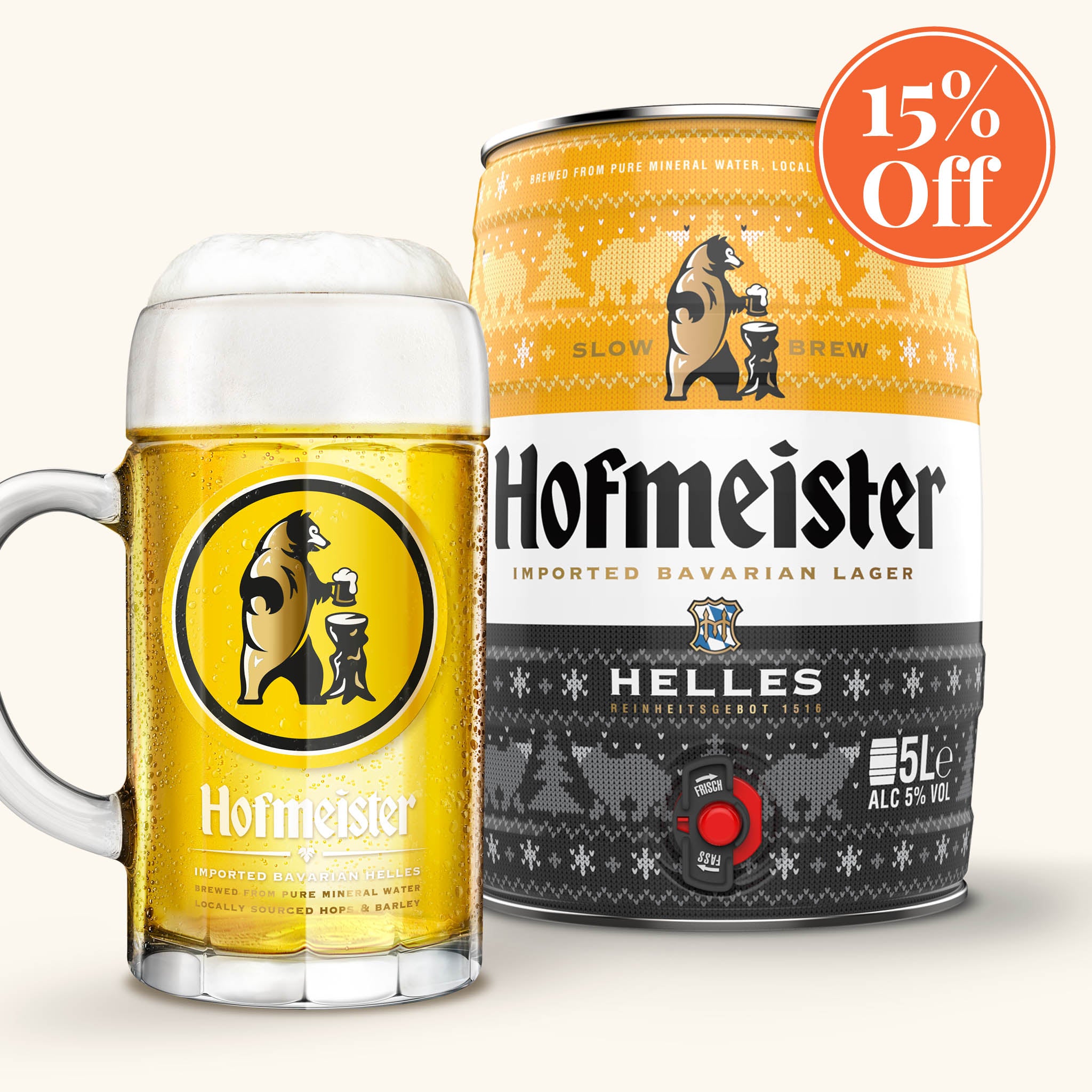 Our limited edition festive mini kegs are back for 2025 and available as a special bundle with a larger than life Hofmeister 2-pint stein glass. A sell-out for the past five years, our Christmas jumper-themed design brings some festive Hofmeister cheer to the party, along with 9 pints of multi-award winning Bavarian Helles lager. Stocks are strictly limited so get yours early to avoid disappointment.