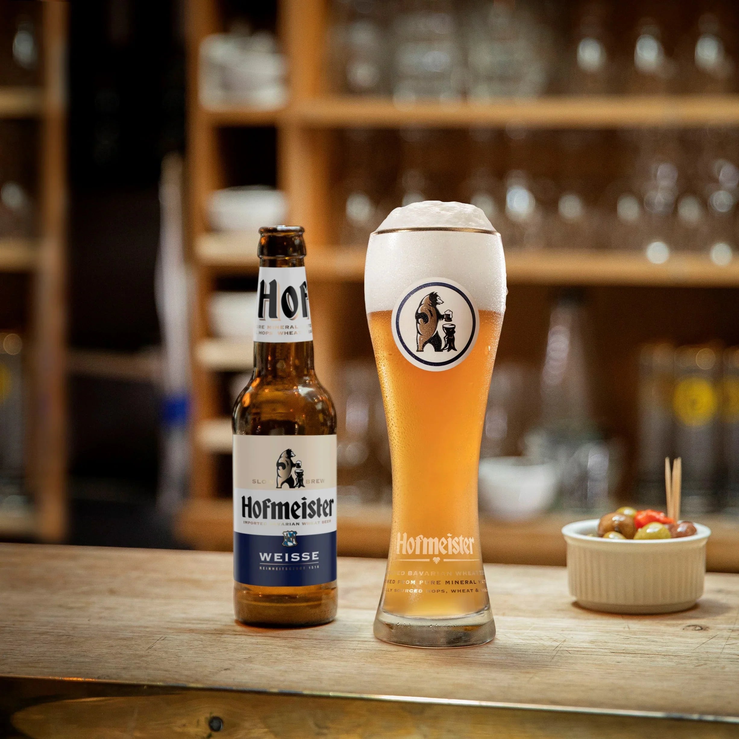 Genuine, imported wheat beer brewed in the heart of Bavaria. Made with mineral water, locally sourced barley, wheat and Hallertau Hops, 5.1% Hofmeister Weisse pours thick and velvety.